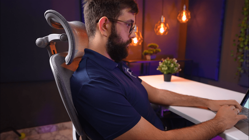 We already mentioned this feature while talking about foldability, but let me expand on it more - it’s the Flip5D armrests, meaning that the armrests can be fully flipped backwards. This feature can be used for space saving purposes when the chair is not in use or I know some people who would be really interested in it for the ability to slide under the table fully while working. I know it’s not the most ergonomic way of working but just look at my editor and you will start to accept any type of sitting as normal. Also this design allows to easily cross legs and not be in a way. So this feature overall gets a loud yes from my editor.