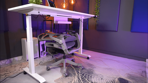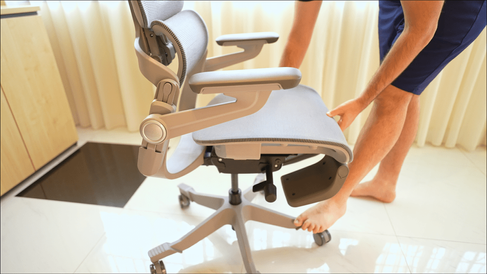 How often have you seen an office chair fold in half? This frame can be folded, allowing you to easily push the chair under a table when it’s not in use. It’s actually quite impressive. The mechanics behind the folding itself are also straightforward and quick - lift the armrests, press two buttons at the same time and your chair is half the size. This feature gets a solid yes from our side. We measured the height, and the lowest it can go is around 68cm which will fit under most standard desks. Or even better - if you have a sit/stand desk but don’t have much space in the room, you can easily fold your chair and push it under, so it doesn’t take up any space.