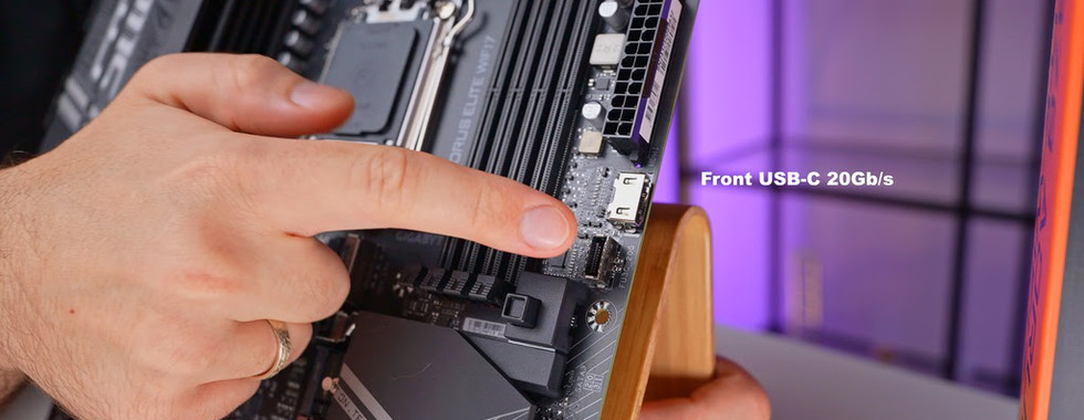 Next up is USB ports - on the internal side, there’s a USB Type-C header supporting 20 Gigabits and a USB Type-A header offering 5 Gbps. You’ll also find a few USB 2.0 headers at the bottom for additional connectivity.