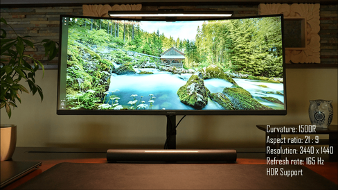 So what makes this particular display gaming focused? Its curved ultrawide 34inch 165 Hz panel with 3440 by 1440 resolution will come in handy when ripping through racing or shooter games.