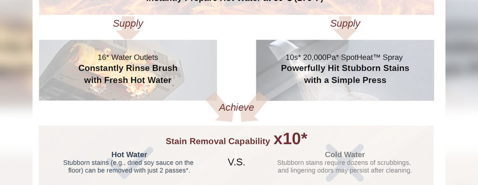 First, directly sprayed onto the floor through the hot water nozzle, where it reaches a temperature of around 55°C.