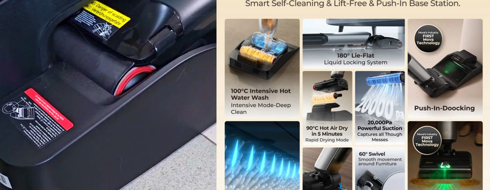 In reality the Hot Water mopping is actually just normal water by the time it touches the floor. The Tineco One S5, on the other hand, uses steam, which, apart from just looking very cool, gets rid of all the bacteria and also gives a more "squeaky clean" feel after mopping. A major downside of the S5 is that it blows hair away with the steam, making it harder to pick it up. If we compare the same situation with Mova vacuum - it grabs hair effortlessly and I haven’t seen any tangles on its brush. Mova even officially states this vacuum is 100% tangle-free. So far it has held up. With the Tineco, I have to detangle the brush after every use.