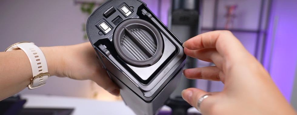Inside, the tank has a spacious debris collection area, and its straight-walled design makes maintenance pretty easy. At the top it has a ridged rubber, which makes it a bit challenging to open but at the same time also gives a reassuring feeling that there will be no leaks, even when the device is laid flat on the floor.